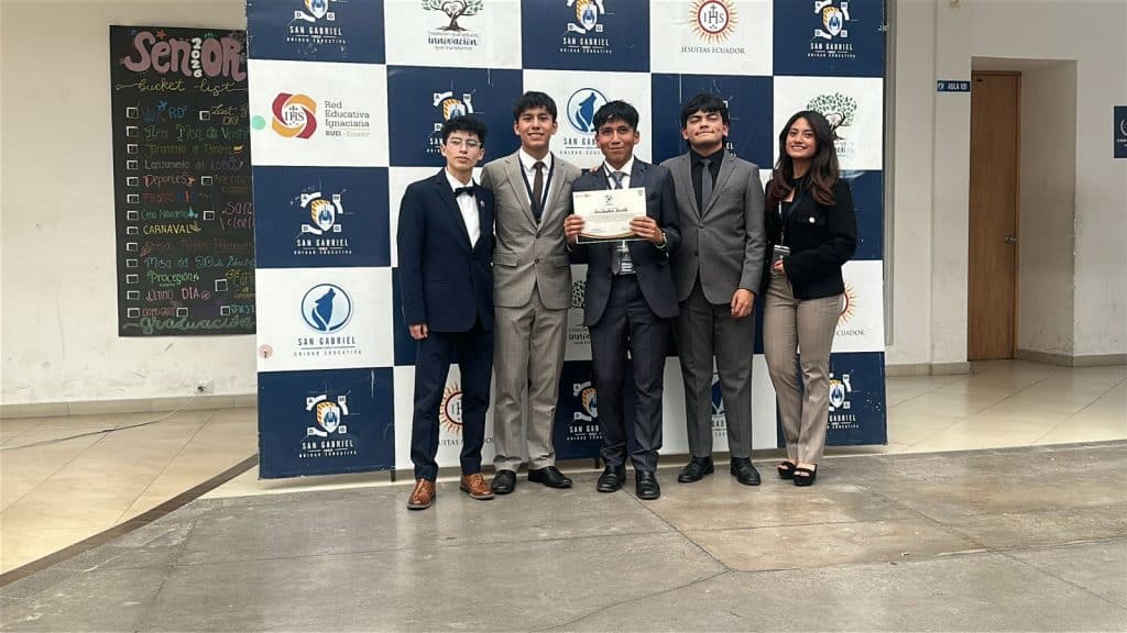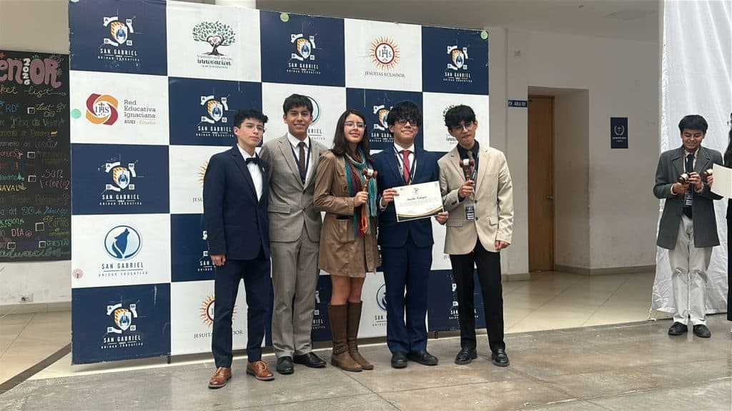 Extendemos nuestras más sinceras felicitaciones al Club de Líderes y sus coordinadores: Leandro Narvaez, José Morocho y Luis Vanegas, por su destacada participación en el Modelo de las Naciones Unidas del colegio San Gabriel. Su compromiso, preparación y capacidad de diálogo demostraron un alto nivel de liderazgo, pensamiento crítico y responsabilidad global.